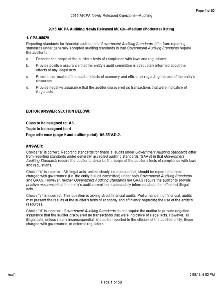 aicpa released questions audit becker