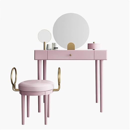 Amazon Com Pnygjdszt Tocador Nordico Sencillo Para Dormitorio O Apartamento Mesa De Maquillaje Moderna Y Creativa Con Espejo De Tamano Taburete Caja Pequena Estacion De Belleza Madera Rosado 80cm Home Kitchen