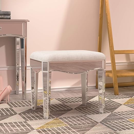 Amazon Com Taburete Moderno Para Tocador Comodo Taburete De Maquillaje Con Patas Con Espejo Banco Acolchado Con Asiento De Piano Para Dormitorio Bano Montaje Sencillo Kitchen Dining
