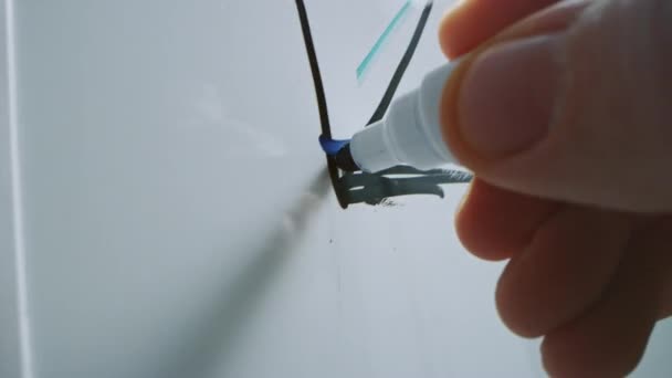 Macro Follow Plan D Un Stylo Marqueur Bleu Tenu A La Main Personne Dessinant Des Graphiques