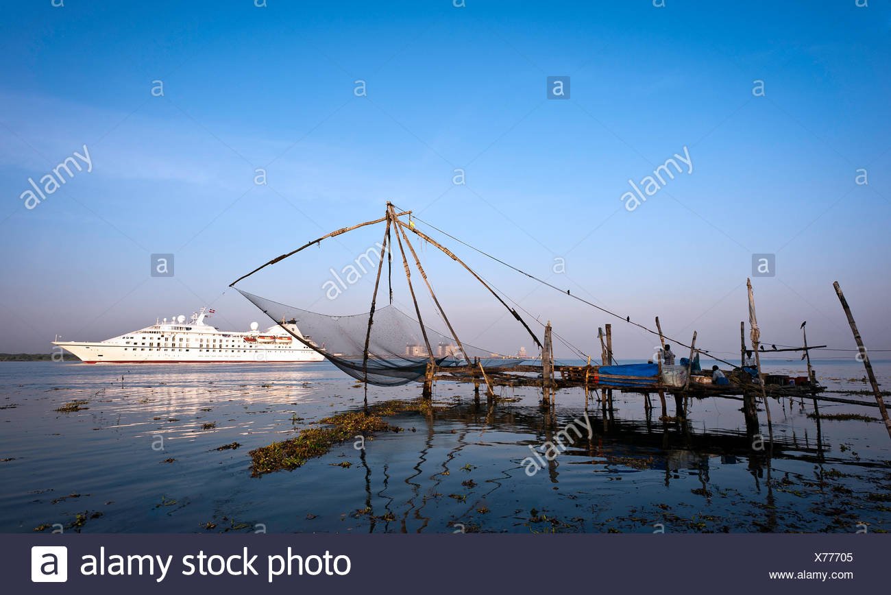 Red De Pesca Chino Barco De Pasajeros El Fuerte Kochi Harbour Kerala India Fotografia De Stock Alamy