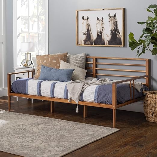 Amazon Com Walker Edison Mid Century Modern Wood Spindle Daybed Headboard Footboard Bed Frame Bedroom Day Caramel Furniture Decor
