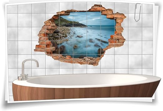 Wanddurchbruch 3d Fliesentattoo Steine Strand Fliesenbilder Nebel Felsbrocken Fliesenaufkleber Wolken Meer Bucht Kuste 135x90cm Eigene Grosse Amazon De Kuche Haushalt