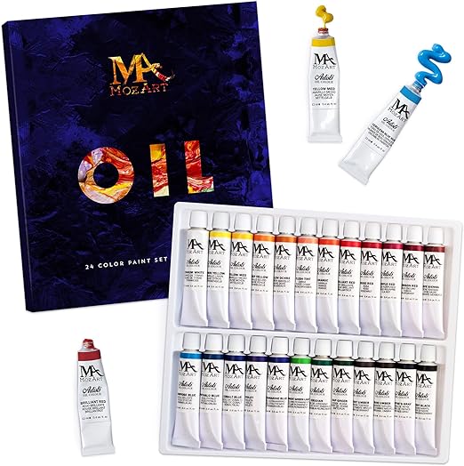 La pintura de aceite Set - 24 colores de pintura 12ml Tubes- artista pinta grado para profesionales, principiantes y estudiantes - Ideal para murales, lienzo, Retrato y Pintura - Suministros Mozart: Amazon.es: Hogar
