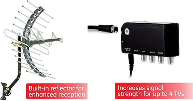 Amazon Com Ge Pro Attic Mount Tv Antenna Outdoor Attic Long Range Antenna 1080p 4 Way Tv Antenna Amplifier Splitter Clears Up Pixelated Low Strength Channels Distributes Signal To Multiple Tvs 50 1006mhz Electronics