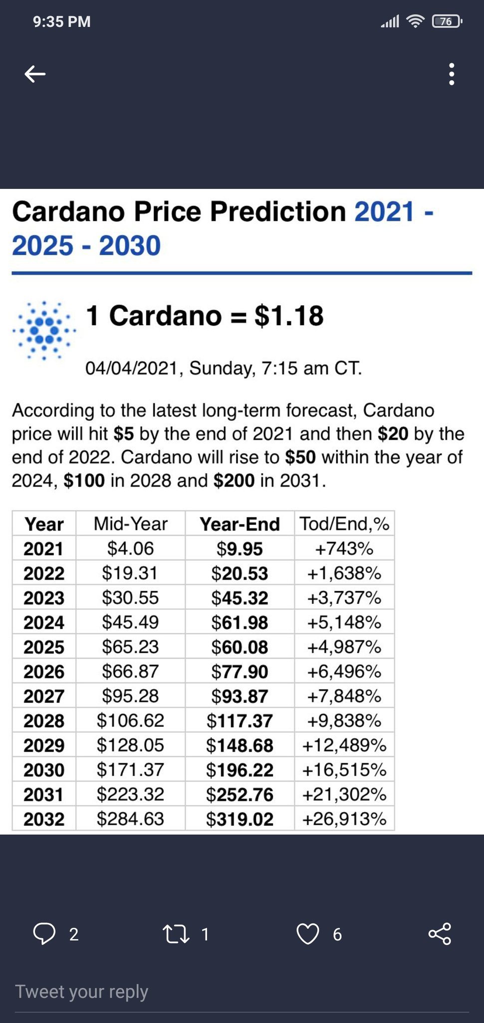 Taur Eed On Twitter Cardano Price Prediction Https T Co 6jsftpz2y1 Twitter