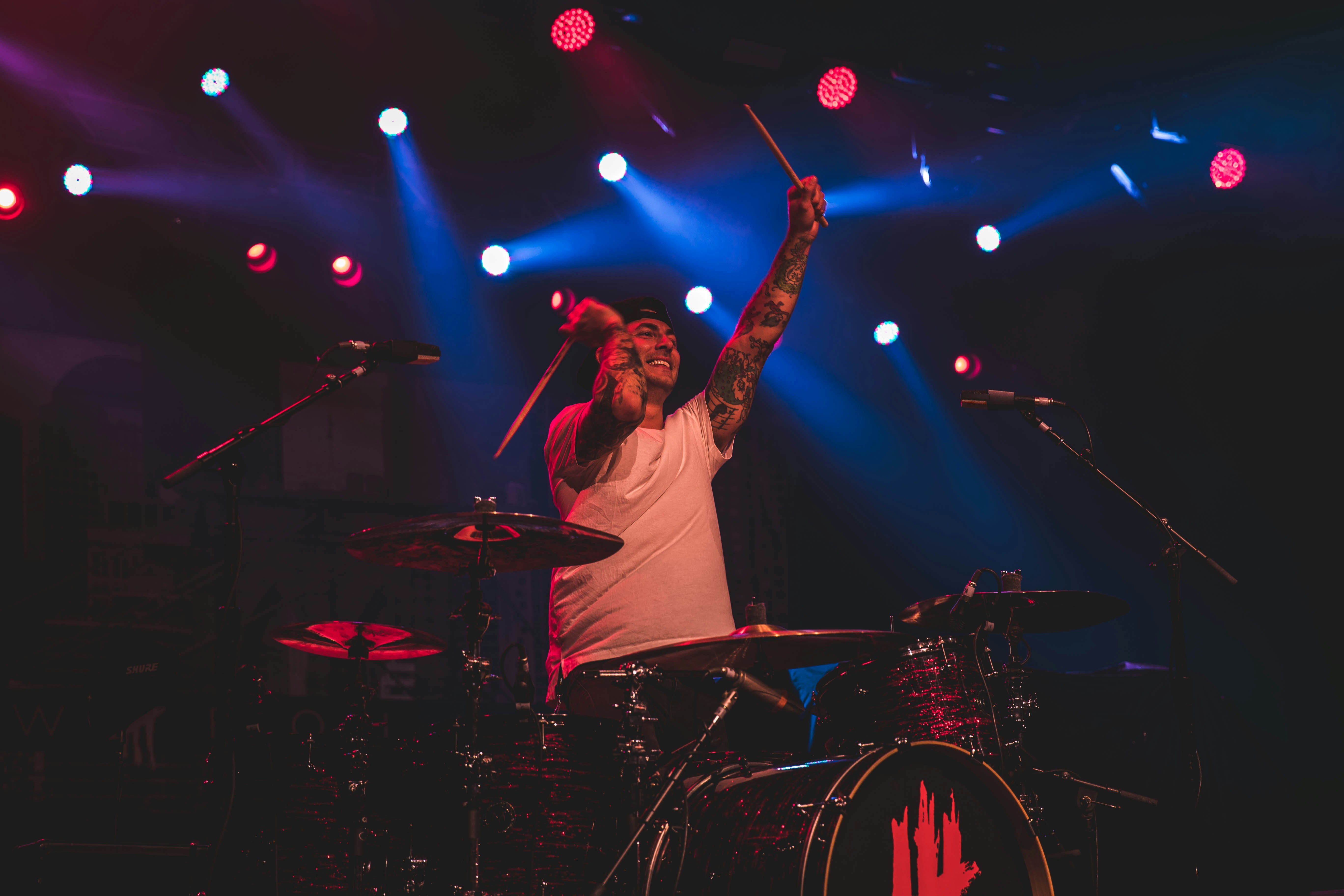 Man Playing Drums With Spotlights Photo Free Stage Image On Unsplash